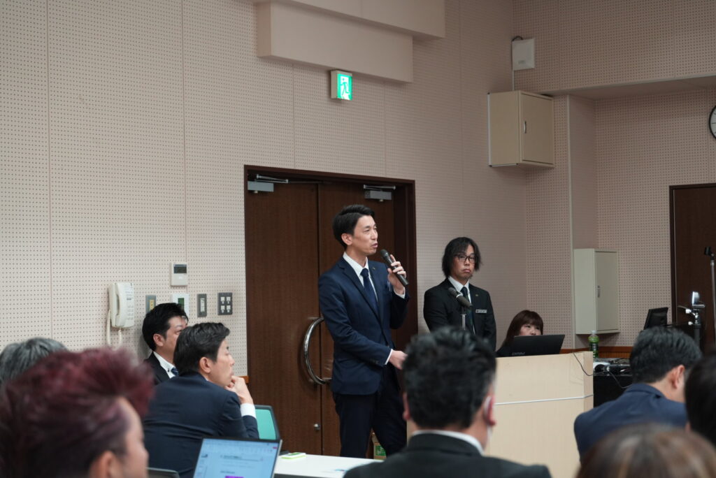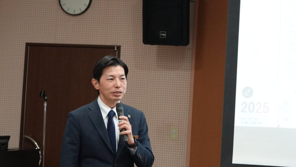 会場は、新期のスタートにふさわしい緊張感と活気にあふれていました。 代表や各部門の責任者から、前期の振り返りと今期のスローガン、具体的な事業計画が発表されました。冒頭には原田代表による、今後の会社の経営方針が示され、社員一人ひとりが真剣な表情で耳を傾けていたのが印象的でした。