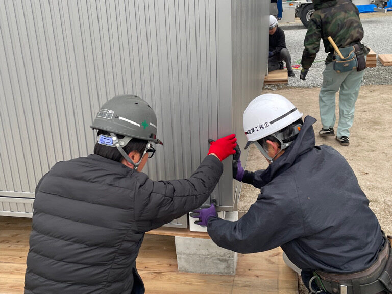今回のモデルは、なんと3連結の大型仕様。 クレーンで慎重に吊り上げ、ミリ単位で位置を調整しながら連結していく作業は、いつになっても緊張感があります。