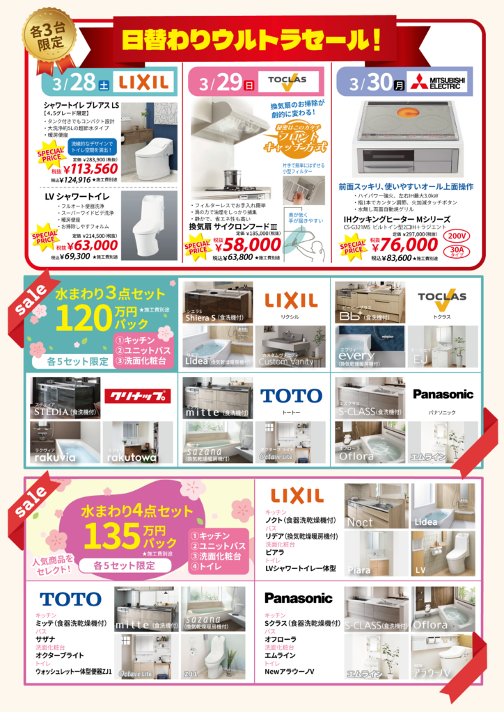 ・日替わりウルトラセール: LIXILや三菱の最新設備が、3日間限定の驚きの価格で登場!